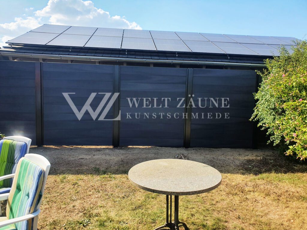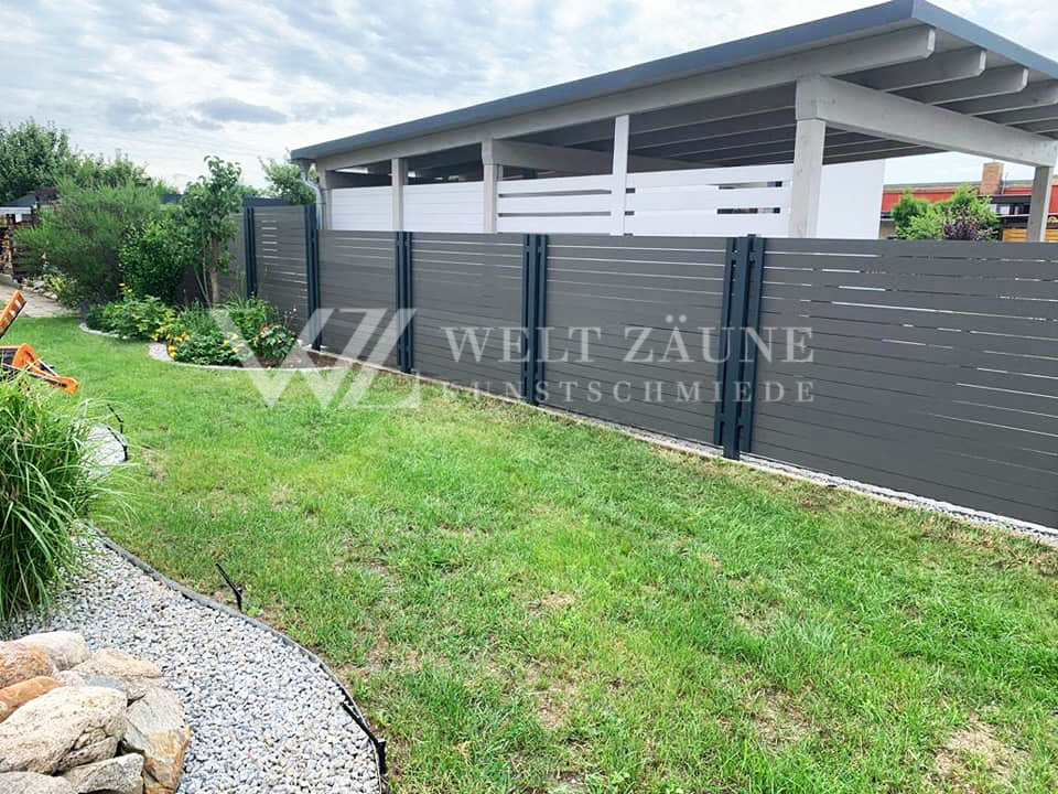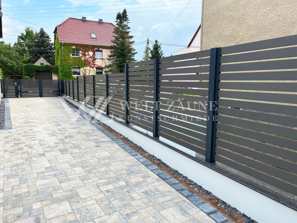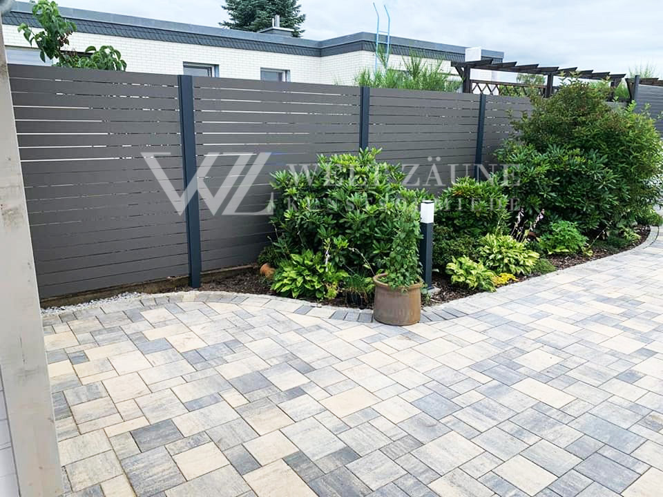Lamellenzäune erfreuen sich immer größerer Beliebtheit. Neben einer modernen Optik schützen sie auch Ihre Privatsphäre. Dieser Zauntyp ähnelt aufgrund der charakteristischen Anordnung der Lamellen Fensterjalousien. Unsere Zäune dieser Art bestehen zu 100 % aus Aluminium. Charakteristische Jalousien, also Winkelprofile, sorgen effektiv für Privatsphäre, ermöglichen aber durch den angebrachten Abstand auch eine freie Luftzirkulation.